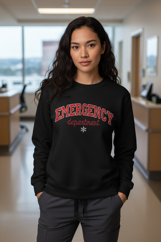 Embroidered Emergency Department Christmas Crewneck Sweatshirt