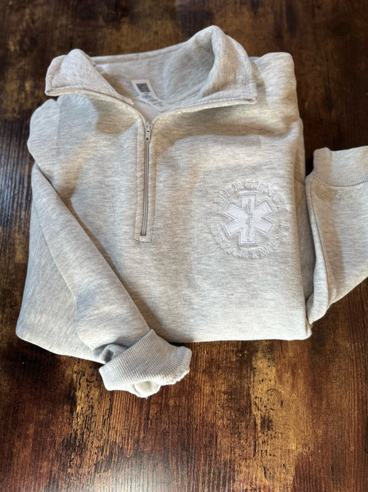 EMBROIDERED Emergency Department Quarter Zip Sweatshirt- READY TO SHIP- SALE