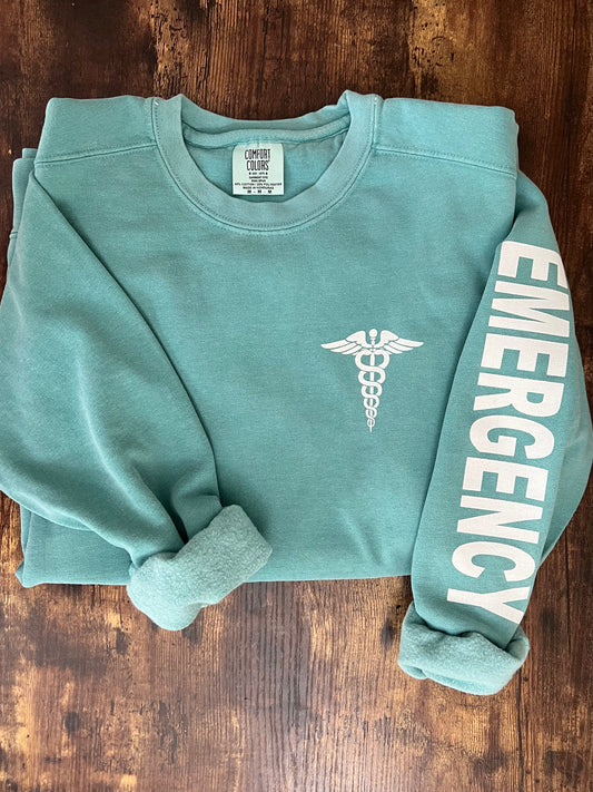 Medical Caduceus Crewneck Sweatshirt WITH EMERGENCY SLEEVE - Comfort Colors