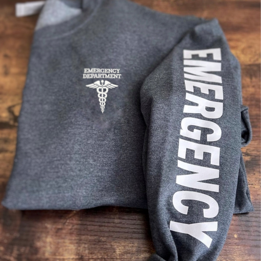 Emergency Department Sweatshirt with EMERGENCY on Sleeve
