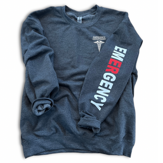 Emergency Department Sweatshirt with (red/white) EMERGENCY on Sleeve