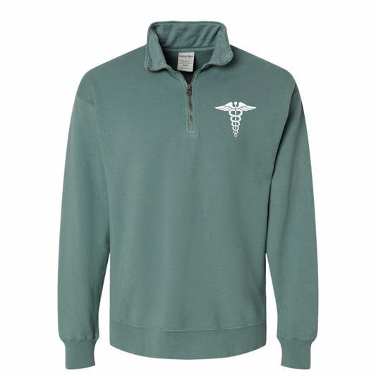 Quarter Zip Sweatshirt Medical Caduceus and EMERGENCY SLEEVE (ComfortWash)