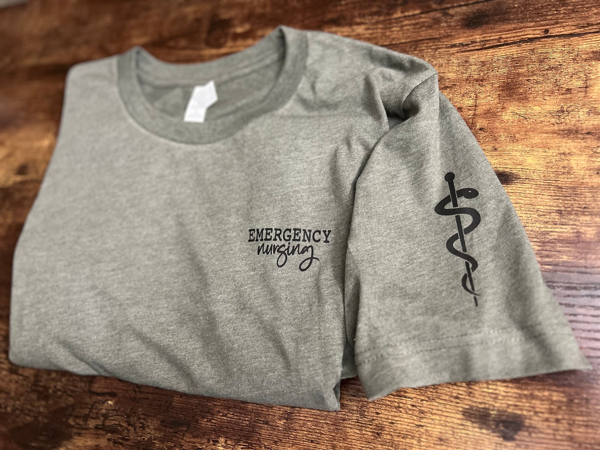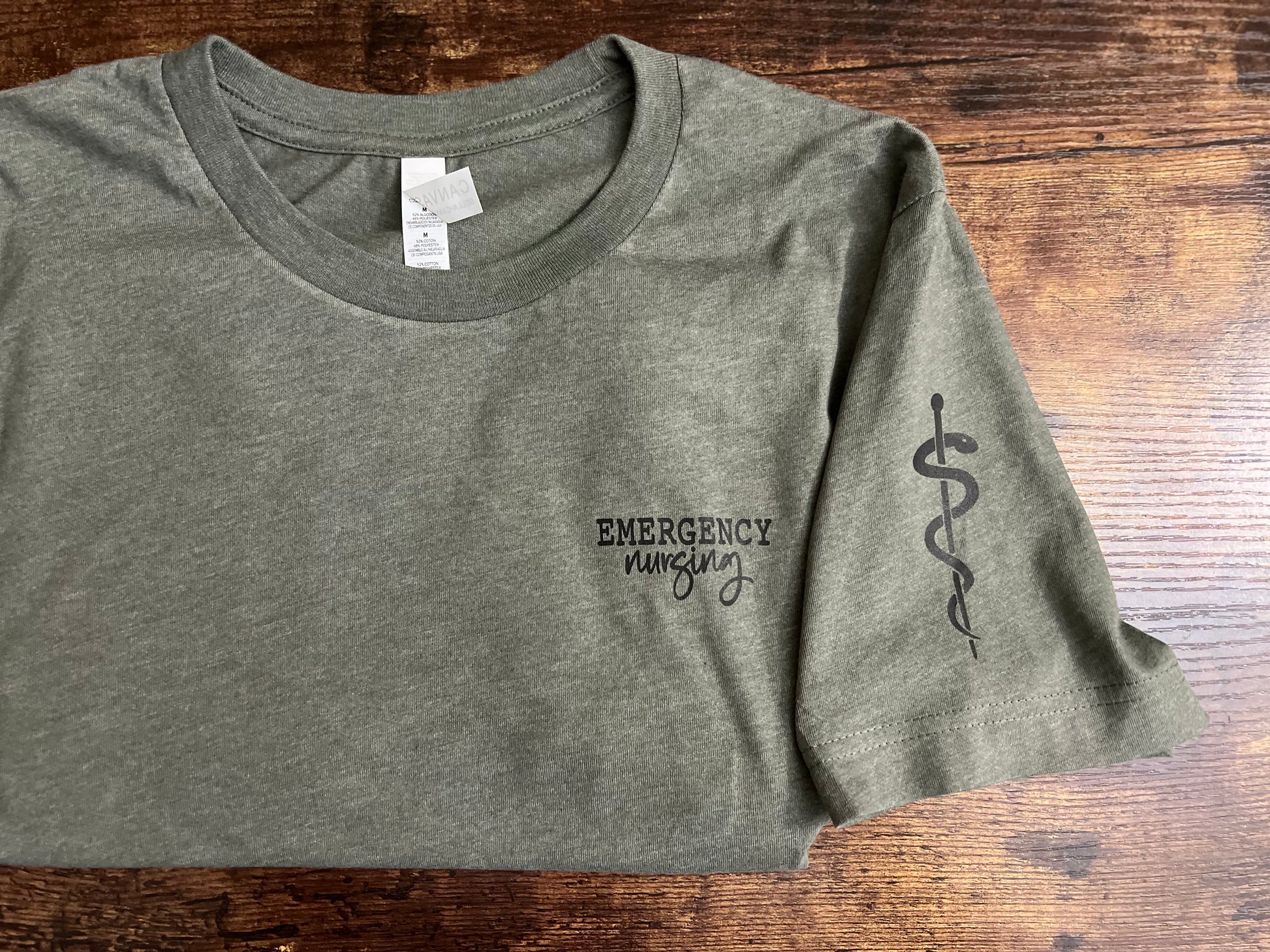 Emergency Nursing Short Sleeve T-Shirt w/ Sleeve Rod of Asclepius